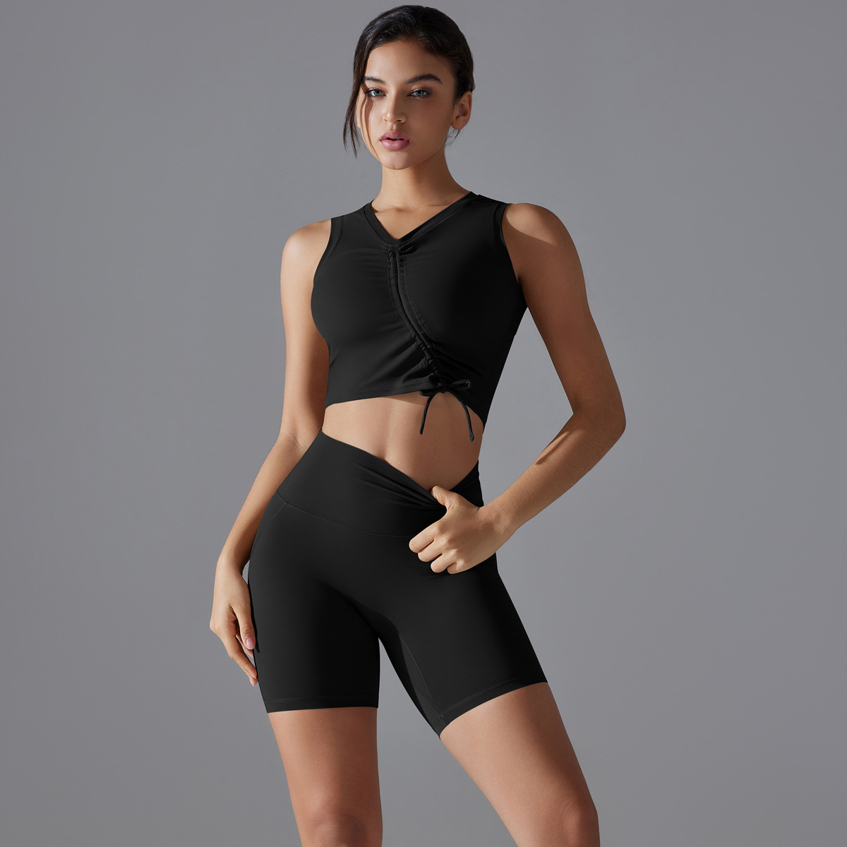Be the first to review “Drawstring Sports Underwear Yoga Clothing Set Running Fitness Antibacterial Yoga Shorts Two Piece Set”